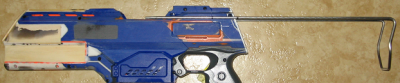 Der Schalldämpfer wird über die Standardkupplung befestigt, kann also auch an andere Blaster angesetzt werden. Was noch fehlt ist der BAAC hinten an Stelle der Schulterstütze (passt genau in das Loch), eine umklappbare Schulterstütze aus 4mm VA und ein abnehmbarer Tragegriff für große Hände, gefolgt von etwas Farbe.