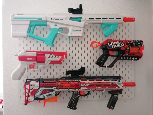 Mit dem Stand heute hab ich um die 25 Blaster, die teilweise an meiner Wand hängen.