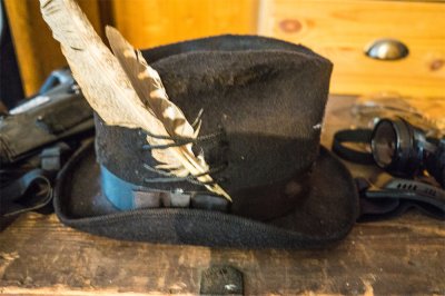 Den Mantel trage ich zusammengerollt hinten am Koppel, eine frühe Kostümstudie zeigt den Mantel noch am Mann, wobei ich dazu noch eine andere Kopfbedeckung gewählt habe.